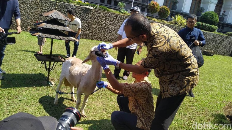 Pengecekan binatang kurban. (Foto: Mukhlis Dinillah/detikcom)Bandung -Sebanyak 370 dokter binatang dikerahkan untuk mengusut kelaikan dan kesehatan binatang kurban di Jabar menyambut Idul Adha. Pemeriksaan dilakukan sebelum dan setelah binatang kurban disembelih.