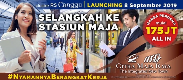 Kini Citra Maja Raya menghadirkan cluster rumah RS terbaru, Cluster Canggu, dengan lokasi strategis, bersahabat dengan CBD Area dan Sekolah Mutiara Bangsa. Dipasarkan dengan harga perdana mulai Rp 175 Juta ALL IN, KPR DP mulai 5% dicicil sd 5 bulan, cicilan mulai Rp 1 jutaan per bulan, dan hadiah penjualan berupa e-Money sampai jutaan rupiah. KPR tersebut didukung oleh Bank BCA, Mandiri, Mandiri Syariah, CIMB Niaga, BTN, BNI, BNI Syariah, BRI, BRI Syariah, OCBC Nisp, Maybank, UOB, CCB, Panin Syariah, Hana Bank, dan Permata.