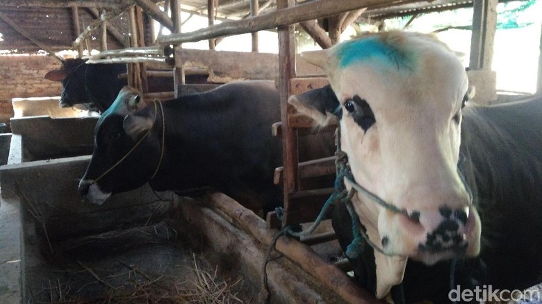 Hewan tak layak kurban di Kota Cirebon diberi tanda cat biru. (Foto: Sudirman Wamad/detikcom)Cirebon -Dinas Pangan Pertanian Kelautan dan Perikanan (DPPKP) Kota Cirebon melaksanakan investigasi kondisi kesehatan binatang kurban di sejumlah peternak dan pedagang.
