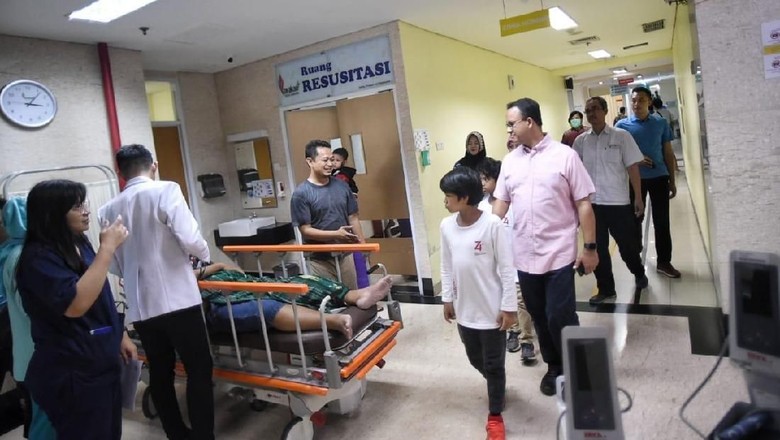 Anies juga mendatangi RSUD Tanah Abang dan RSUD Tarakan. Dia memastikan layanan di rumah sakit tetap berjalan meski dengan proteksi genset/UPS.